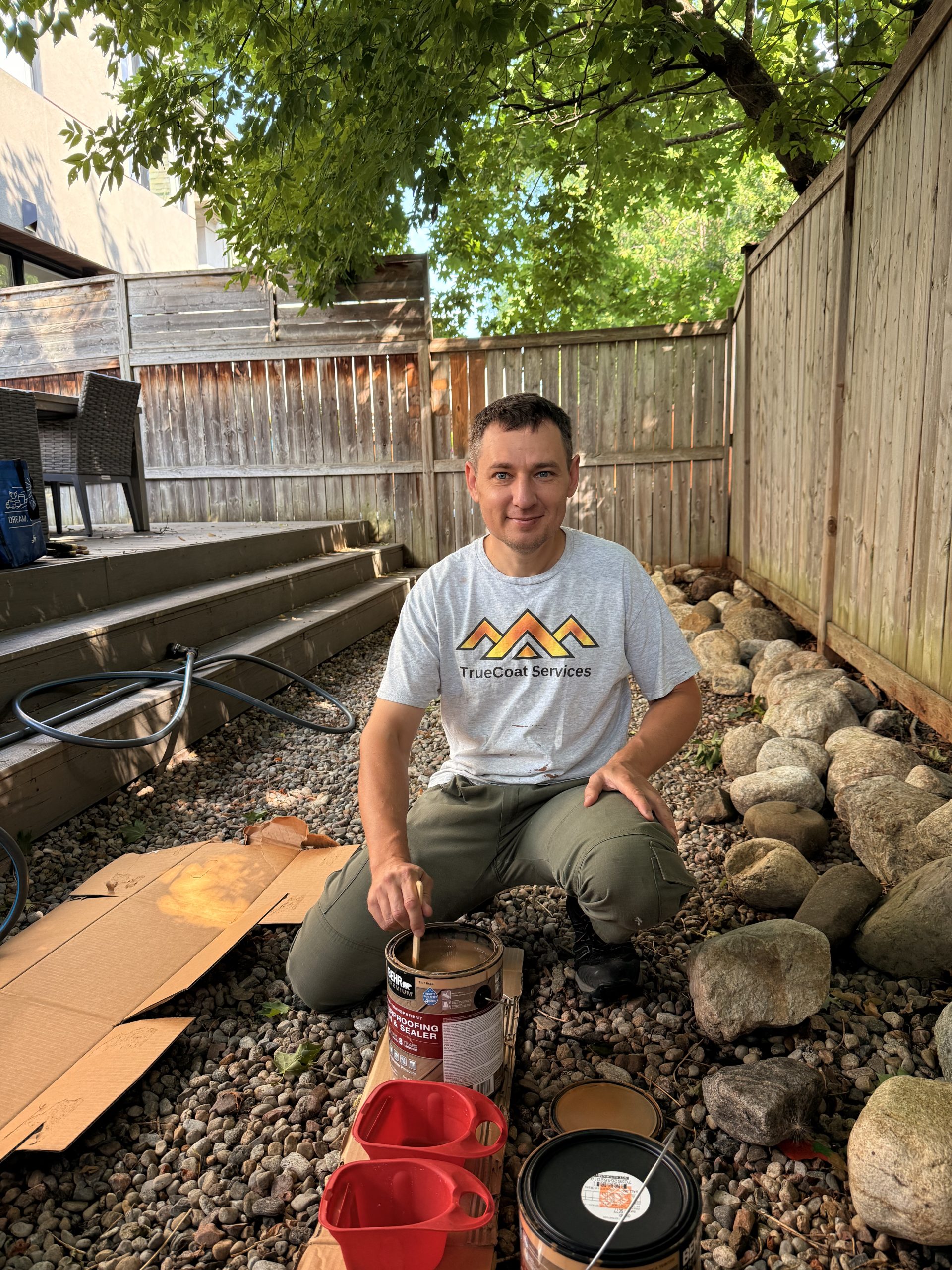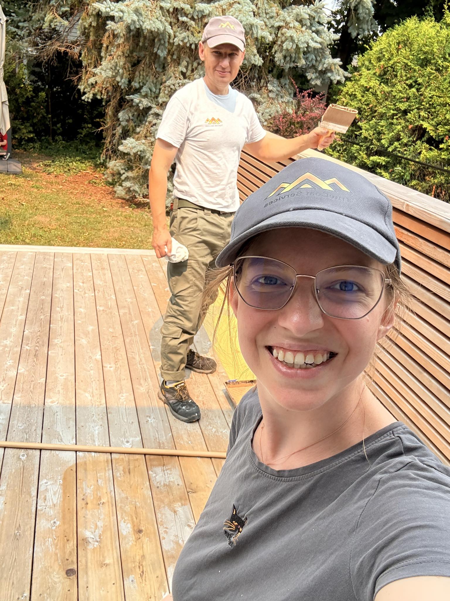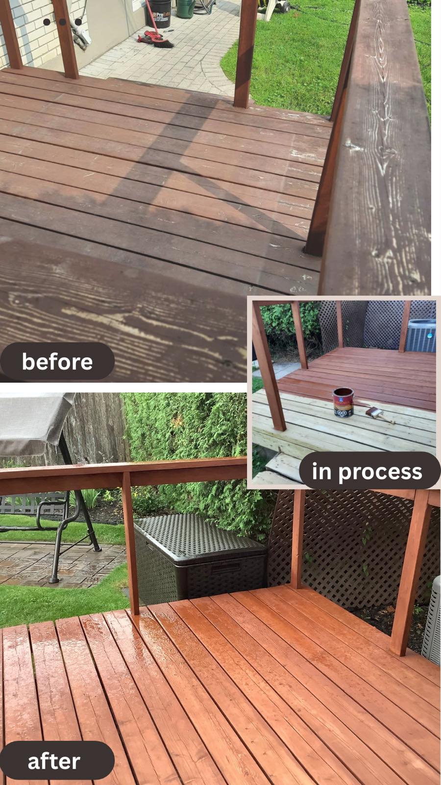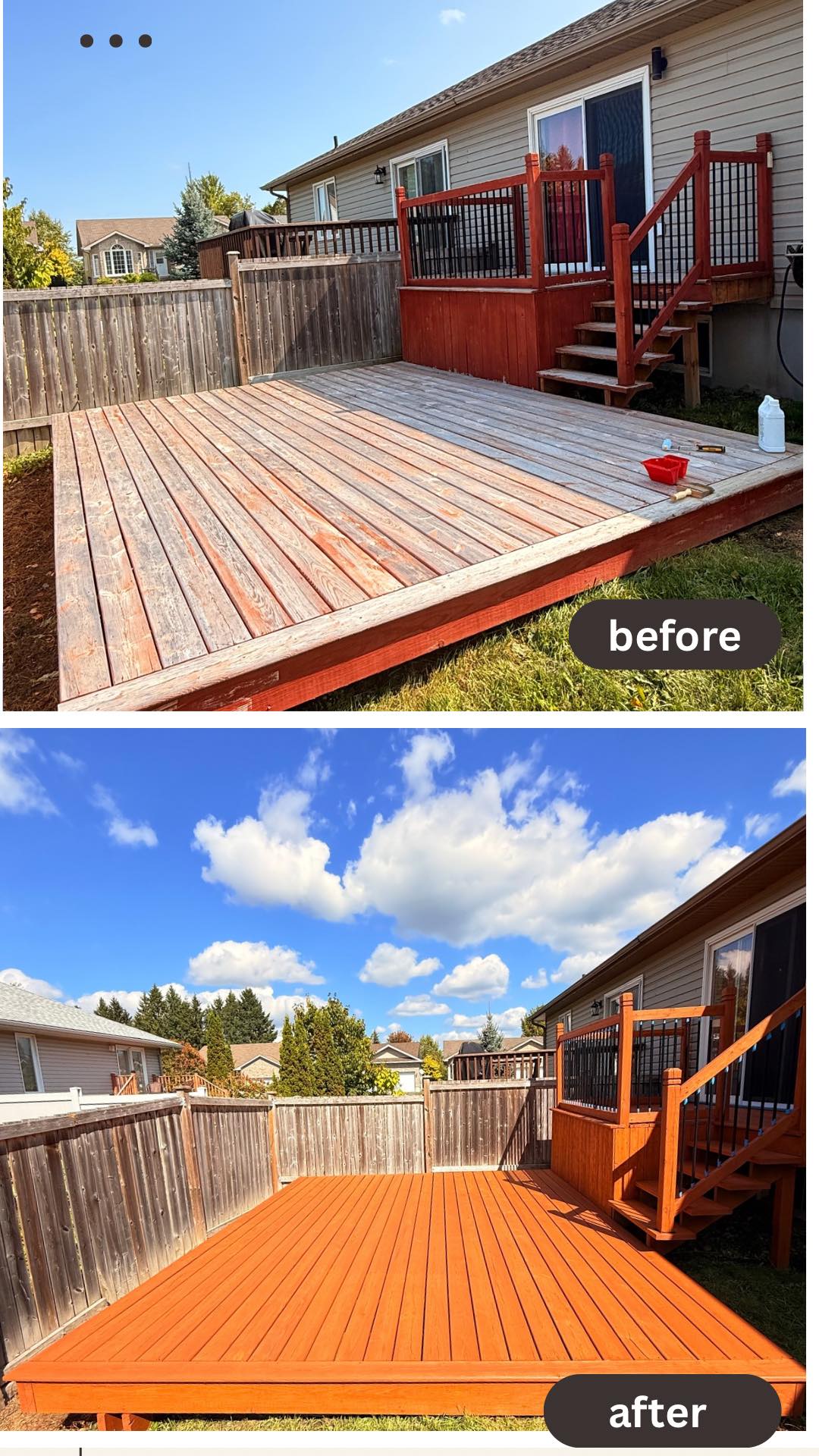 Only after proper preparation do we apply a high-quality protective stain, selected for durability and long-term protection against Canadian weather.
