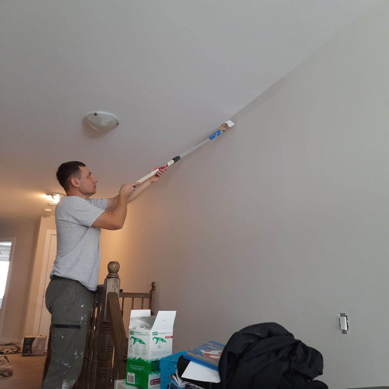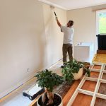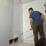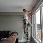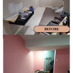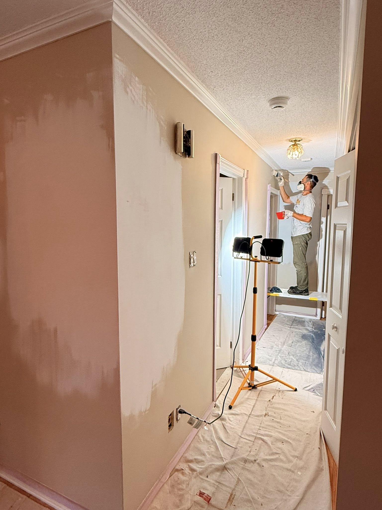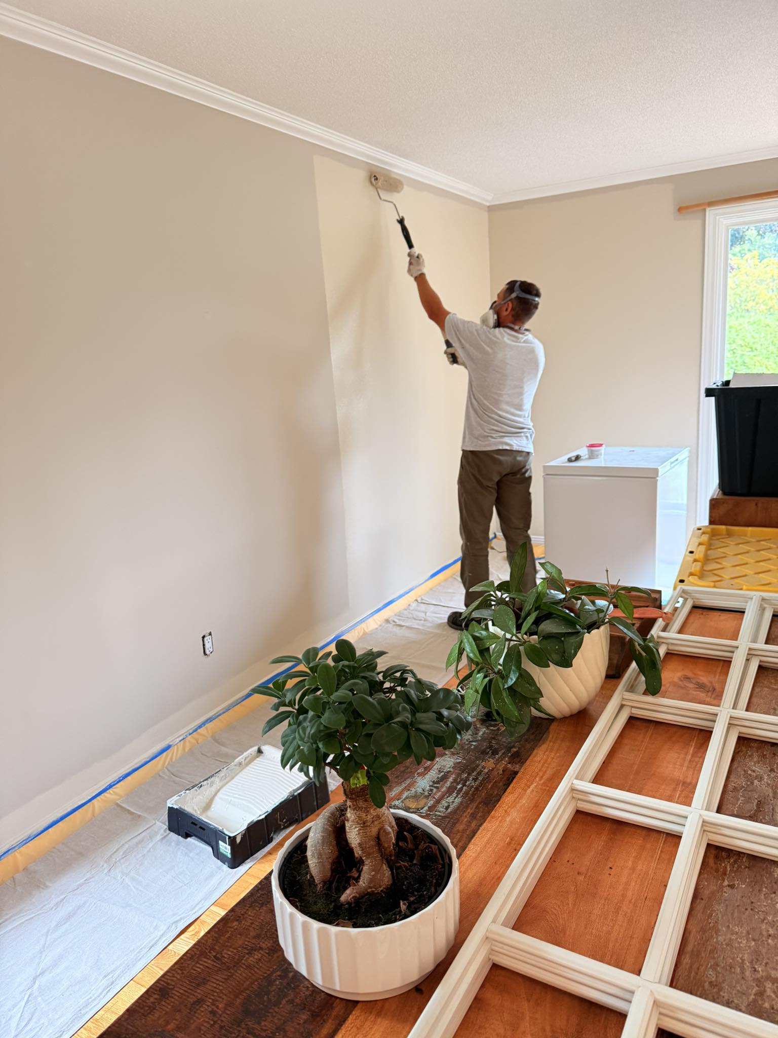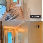 - 1. Room Preparation – We carefully move furniture to the center, cover it with clean plastic sheeting, and protect all flooring with drop cloths.